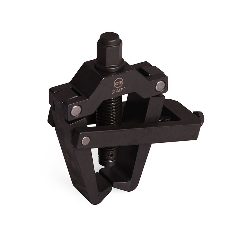 Съемник шаровой Mitsubishi Canter / FUSO - Назначение инструмента для ремонта ходовой: демонтаж шаровой опоры из поворотного кулака. - Применение: Mitsubishi Canter 3.5 т, 4.4 т, а также Fuso Rosa. - Особенность съемника: регулируемая величина захвата.