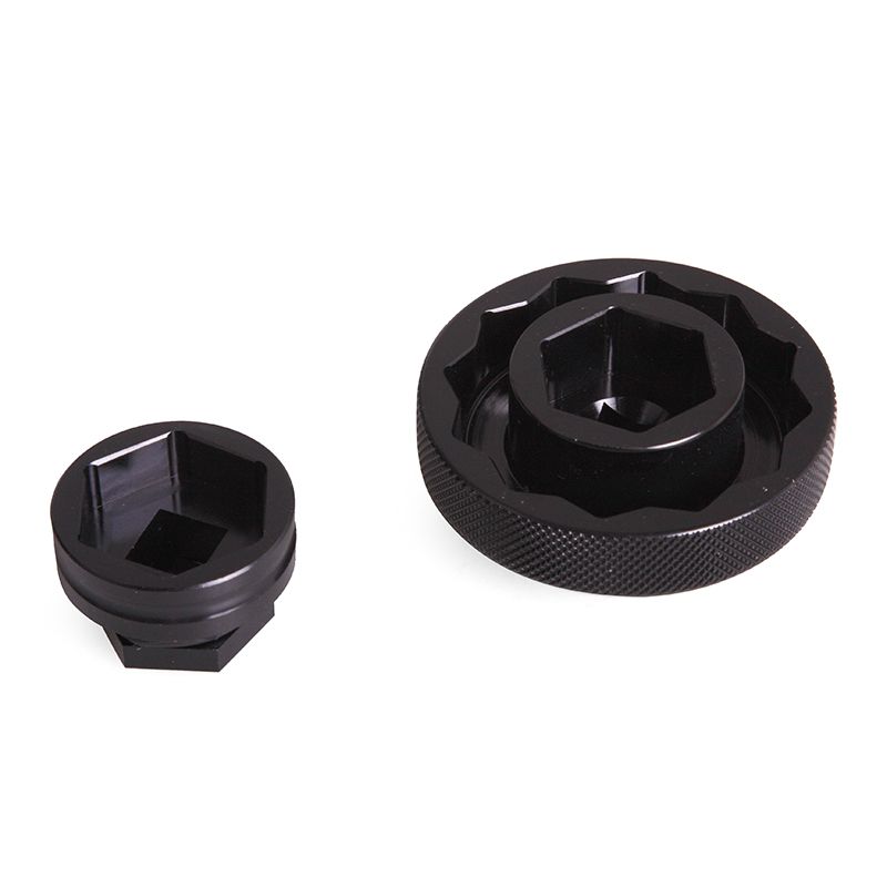 Съемники передней и задней колесных гаек Ducati Набор специальных съемников или ключей для предней и задней колесных гаек в Ducati ключает в себя одну комбинированную головку, 4 простые головки и 3 круглых ремонтных кольца. Технические характеристики съемников для предней и задней колесных гаек Ducati - Комбинированная головка двухразмерная: для задней колесной гайки предусмотрен размер - 55 мм (двенадцатигранник), для передней колесной гайки - 28 мм (шестигранник). - Другие головки имеют следующие размеры: - 41 мм/46 мм (шестигранник/двенадцатигранник) для гайки заднего колеса - 30 мм (шестигранник) и 28 мм (двенадцатигранник) для гайки переднего колеса. - Все головки имеют разъем под ключ 1/2". - Материал инструмента для Дукати: алюминий 7075-T с черным анодированием. - Головки 30 мм (шестигранник) и 28 мм (двенадцатигранник) можно установить на комбинированную головку. Их можно использовать совместно или отдельно.