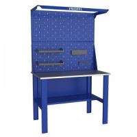 870х1200х700 Слесарные столы с оцинкованной столешницей для оснащения рабочих зон в автосервисах, гаражах, мастерских, производственных цехах. Конструкция данной модели универсальна: 2 опоры, полка и столешница, с большим экраном и подсветкой; основания изготовлены из листового металла и покрыты порошковой краской. Столешница выполнена из фанеры (24 мм) и обшита оцинкованным металлом толщиной 1 мм. Сверху экрана установлена подсветка на магнитных креплениях для легкого монтажа.