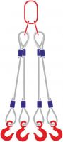 Строп канатный с 4 крюками 4СК применяется с подъемными кранами, талями, тельферами. Он представляет собой четыре ветви, соединенные между собой кольцом. Такая конструкция делает его распространенным при перемещении объектов со сложной конфигурацией. Кроме того, приспособление востребовано из-за минимального линейного расширения.