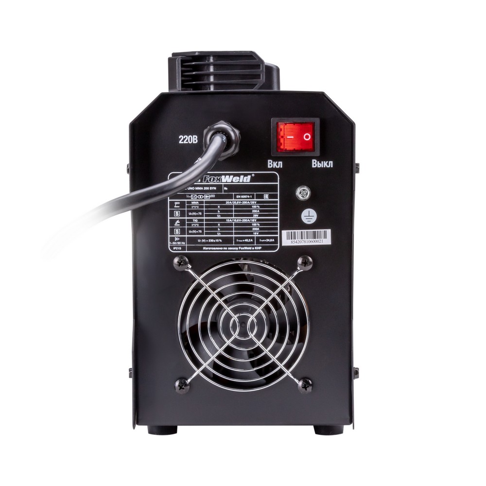 Включение источника питания сварочного тока Foxweld UNO MMA 200 SYN, осуществляется на задней панели при помощи клавиши выключателя.