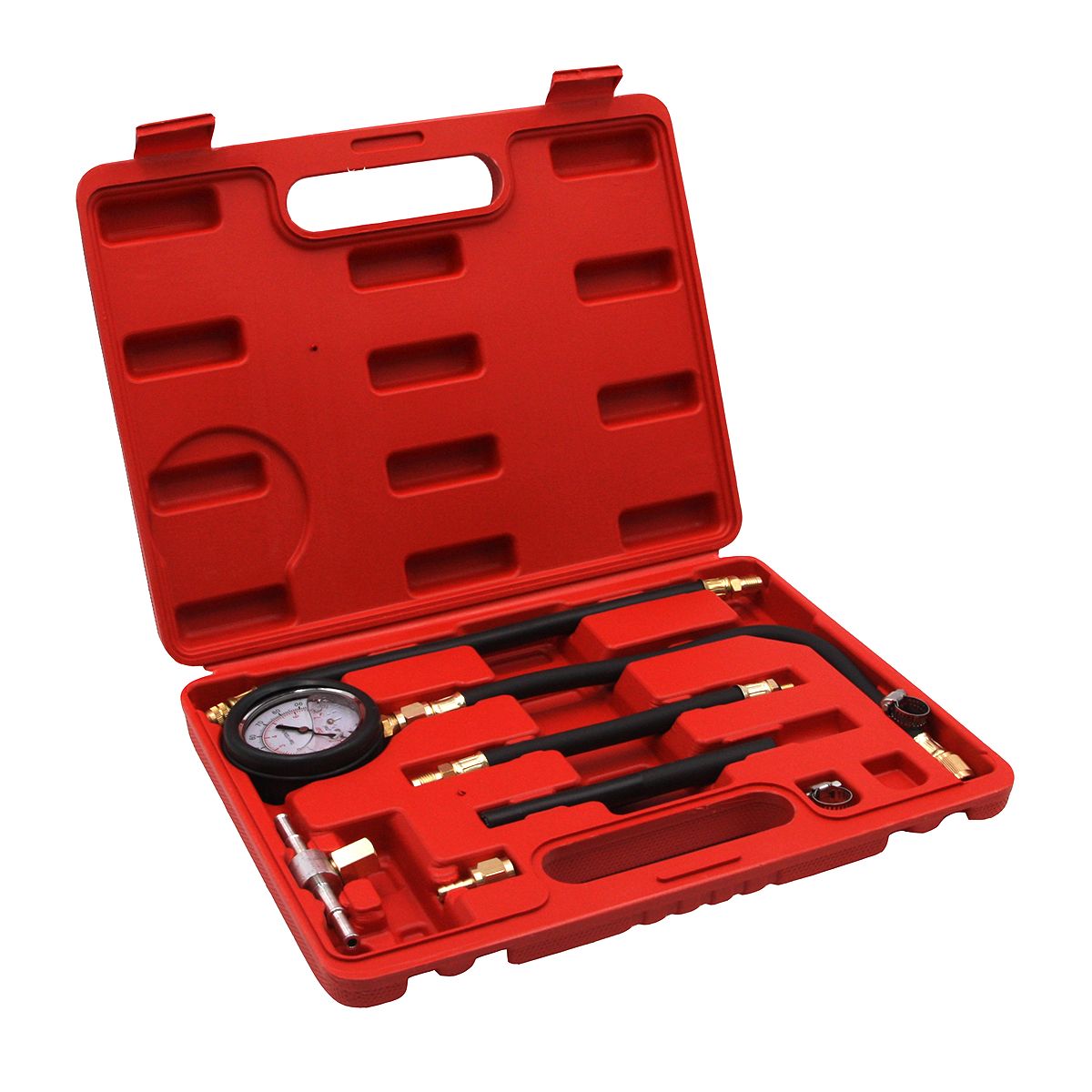 Тестер давления впрыска в двигателе внутреннего сгорания, манометр с глицерином позволяет проверить состояние топливной системы автомобиля и предотвращает ее поломки. Циферблат на манометре заполнен глицерином что делает возможным стабилизировать показания манометра более точными и исключает дрожание стрелки при проведении диагностики топливной аппаратуры.С помощью комплекта можно проводить проверку топливной системы как с портом Шредера, так и без него. Набор прост в применении. Подойдет для использования как для начинающих диагностов, так и для специалистов с опытом. Комплектация: Манометр 0-7 бар(0-100PSI) Фитинг латунный 1/4 "внутр. резьба X елка 1/8 "(6мм) - 18 мм Фитинг латунный 1/4 "внут. резьба X 1/4" внеш. Резьба Фитинг Алюминиевый 1/4" внут. Резьба И 3/8" X 1/8 " Шланг гибкий 1/8" внеш. Резьба X 1/4 " внеш.резьба длина 180 мм Шланг гибкий 1/4" X 2-1 / 2 " длина 200 мм Шланг гибкий 90 мм внут. 6 мм Шланг гибкий 90 мм внут. 8 мм Шланг гибкий внутр. Резьба 1/4" х 3/8" внеш. Резьба 355 мм Хомуты для шлангов 2 шт