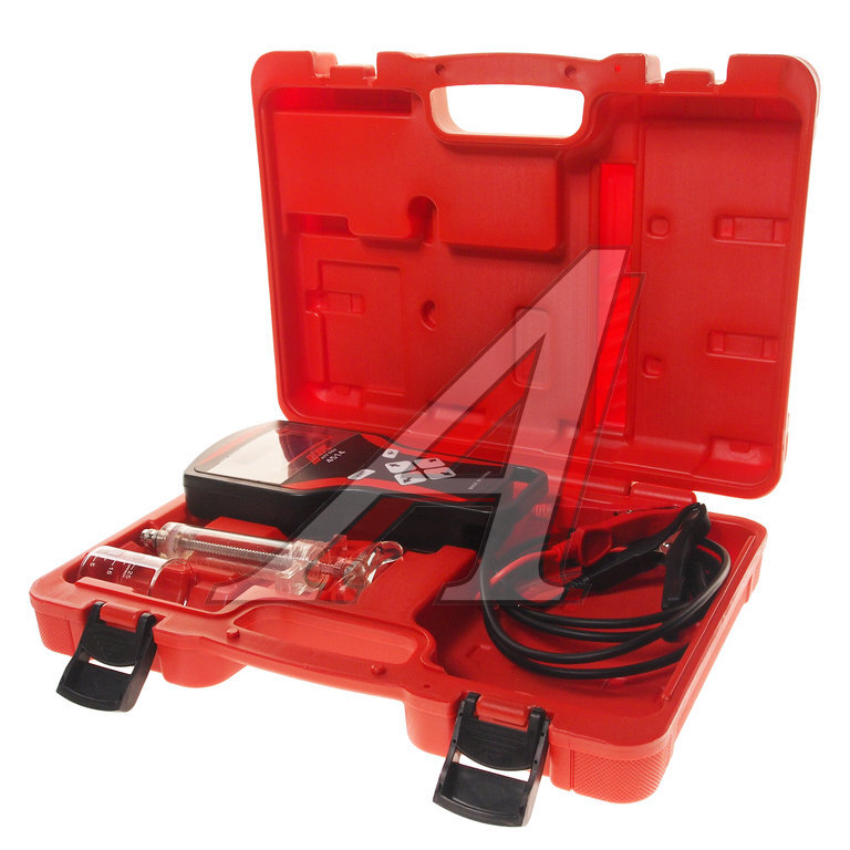 Комплектация Тестер. Шприц для тормозной жидкости, 20 мл. Колба, 25 мл. Шланг (полиуретановый) 4x6x150 мм. Ударопрочный кейс. Описание Спецификация по SAE J1730. Для тестирования необходимо минимальное количество тормозной жидкости. Простое управление. Прибор обеспечивает проверку качества тормозной жидкости по температуре кипения. Выполняется непосредственный разогрев жидкости до температуры кипения, фиксирование ее на дисплее и одновременный вывод на дисплей эталонных температур по DOT 3,4,5. Важные рекомендации Не проводите тестирование при количестве тормозной жидкости в колбе менее 20-25 мл. Не трогайте кончик тестера во время работы для избежания получения ожогов. Необходимо предохранять наконечник тестера от ударов и/или падений, которые могут его повредить.