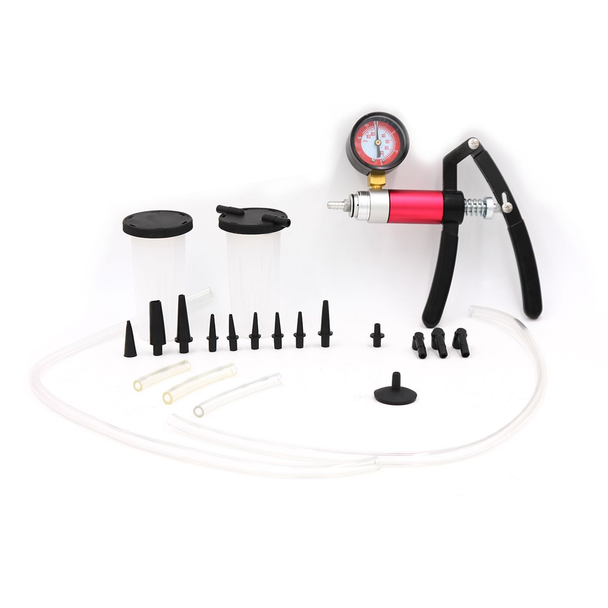 Универсальный ручной тестер Данный прибор представляет собой универсальный тестер для диагностики различных автомобильных систем, линии давления и вакуумные магистрали. В набор входит ручной насос для создания давления и разряжения. Универсальный тестер подобной конструкции рекомендуют использовать различные производители автомобилей, такие как: - AUDI/VW - Porsche - Chrysler - Daihatsu - Nissan - Toyota - Peugeot - Mazda - Ford, - BMW - и многие другие. С помощью данного тестера можно диагностировать различные системы автомобиля - Система зажигания - Клапан турбины - Клапан EGR (система рециркуляции отработанных газов) - Вакуумная линия трансмиссии - Тормозная система - Топливная система - Система кондиционирования - Система охлаждения Особенности Создаваемое давление: 0 – 1,5 Бар Создаваемое разряжение: 0 – 1 Бар Комплектация - Гибкий шланг для подключения - 2 шт - Адаптеры - 14 шт - Емкости для жидкости - 2 шт - Удлинители - 3 шт - Универсальный ручной тестер - 1 шт - Кейс - 1 шт
