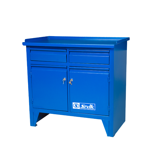 Верстак слесарный двухтумбовый. Предназначен для выполнения различных слесарных работ и для хранения инструмента, крепежа и прочих предметов. Применяется на станциях технического обслуживания и ремонта автомобилей, на других предприятиях. Жесткая сварная конструкция и металлическая столешница толщиной 3 мм, обеспечивают высокую прочность и надежность.