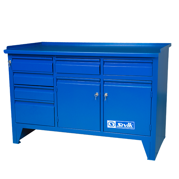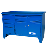 Верстак слесарный трехтумбовый. Предназначен для выполнения различных слесарных работ и для хранения инструмента, крепежа и прочих предметов. Применяется на станциях технического обслуживания и ремонта автомобилей, на других предприятиях. Жесткая сварная конструкция и металлическая столешница толщиной 3 мм, обеспечивают высокую прочность и надежность.
