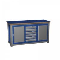 MECHANIC-М15.060 — это оборудование, предназначенное для осуществления слесарных работ в сервисах по ремонту транспортных средств, а также для установки в производственных помещениях. Такие верстаки оснащены двумя тумбами, шестью выдвижными ящиками для инструментов. Технические данные Данный станок имеет столешницу, изготовленную из стали, толщиной 6 мм и фанеры (24 мм). Благодаря чему максимально допустимый уровень нагрузки на ее поверхность составляет 3 тыс. кг. Высота станка составляет 1500 мм, глубина 700 мм, и ширина 870 мм.