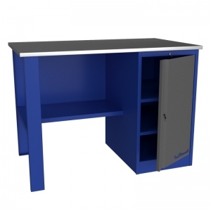 Верстак PROFFI-112 T спроектирован для организации рабочего места в специализированных цехах, образовательных учреждениях и промышленных предприятиях. В конструкции предусмотрена столешница, нижняя полка, тумба, которая оснащается дверью и центральным замком. Для изготовления столешницы используется фанера толщиной 24 мм, которая покрывается оцинкованным металлом толщиной 1 мм. Основания верстака произведены из листового металла, покрытого специальной краской для защиты от коррозии. Весит верстак 70 кг. Его ширина составляет 1200 мм, глубина — 700 мм, а высота — 870 мм. Изделие не имеет экрана. Данная модель способна выдержать нагрузку не более 300 кг.