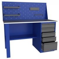 870х1400х700мм, 1 тумба - 5 ящиков, ц. замок, полка, экран с комплектом навесок, оцинк. столешн. h=24 мм (фанера+оцинкованный металл 1мм). Для организации рабочих мест в автосервисах, мастерских, цехах и т.д., компания разработала линейку верстаков и рабочих столов. Основания этих изделий изготовлены из листового металла и покрыты порошковой краской. Столешницы сделаны из фанеры толщиной 24 мм. и обшиты оцинкованным металлом толщиной 1 мм.