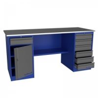 Cтолешница 1800 мм (фанера 24 мм + оцинкованный металл 1 мм), тумба с ящиком и дверью, тумба с 6-ю ящиками, полка-стенка. Вес - 110/122/135 кг. Объем - 0,62/0,65/0,68 куб. м. Кол-во мест 4/5. (ВхШхГ)870х160х700