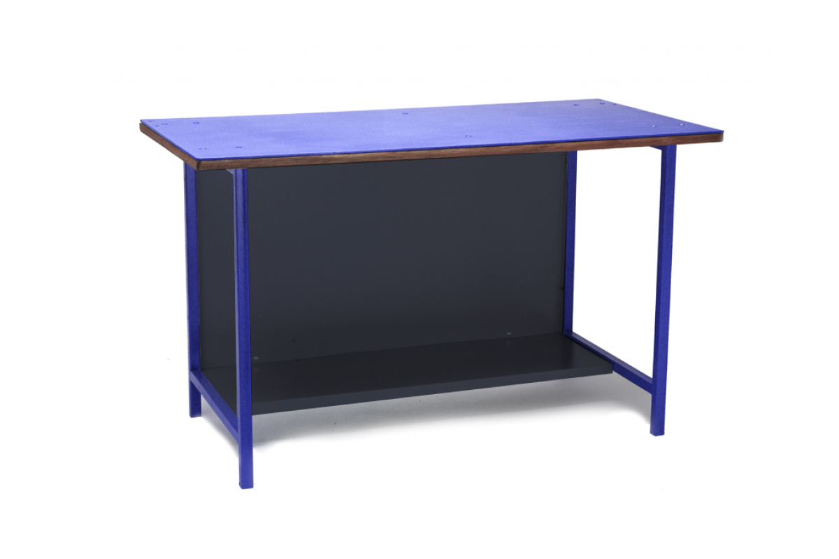 Полка по всей ширине изделия служит для удобного размещения инструмента, оснастки, крепежа и документации, используемых в процессе работы. Столешница состоит из двух слоев: фанеры (24 мм) и стального листа (6 мм), что обуславливает ее повышенную устойчивость к износу.
