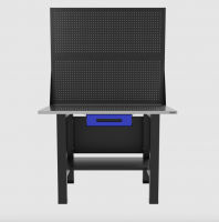 Серия "Low Cost", Цвет: Черныи, Размеры ВхШхГ: 870х1200х700 мм, Столешница: МДФ 24мм + сталь 1,2 мм, Материал корпуса: сталь 1,2 мм, Вес: 60 кг, Экран (1 шт): 1200x500x25 мм, вес 6,6 кг, Ящик: Синий, Наружный размер (ящика) ДхШхВ - 495х460х112 мм. Полезная площадь (ящика) 470х370 мм. Вес 6,55 кг. Допустимая нагрузка на верстак: 450кг