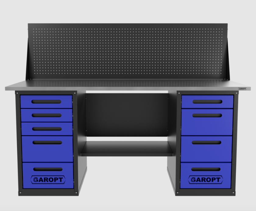 Верстак двухтумбовыи 4 ящиков /5 ящиков с экраном 1800*700 синий GAROPT, GT1800Y4Y5PP.blue