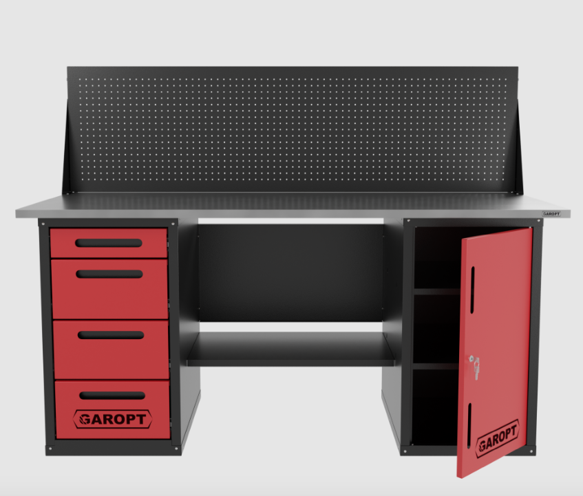 Верстак двухтумбовыи дверь/4 ящиков с экраном, красный 1800*700 Garopt, GT1800DY4PP.red