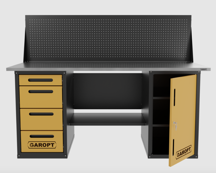 Верстак двухтумбовыи дверь/4 ящиков с экраном, желтый 1800*700 Garopt, GT1800DY4PP.yell