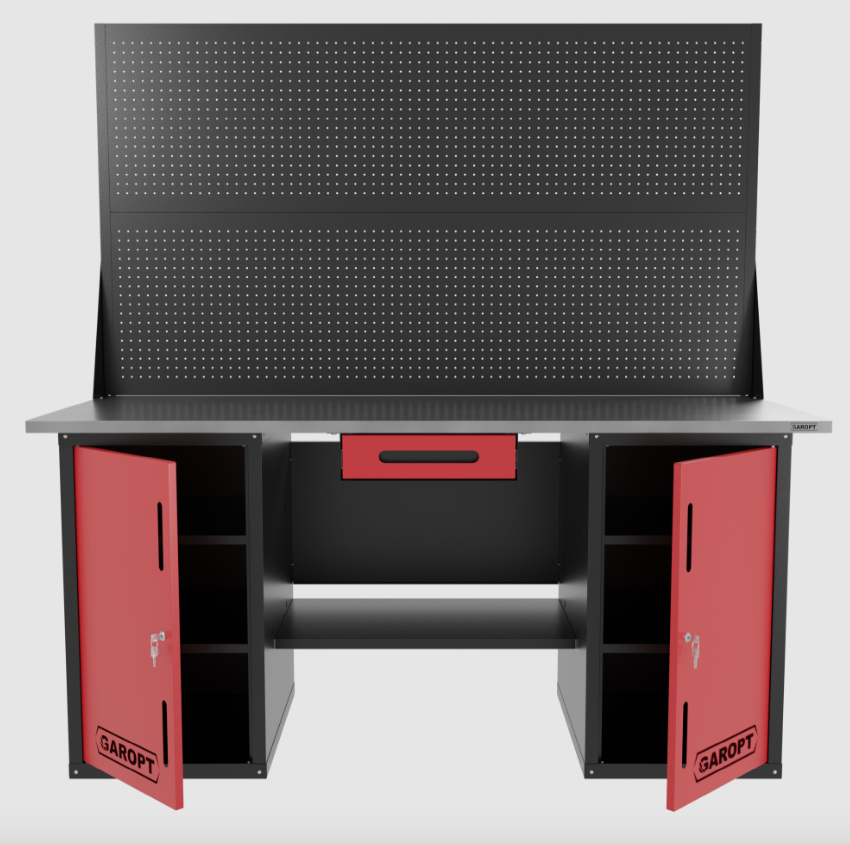 Верстак двухтумбовыи с двумя экранами и ящиком, красный 1800*700 Garopt, GT1800DDY1PP2.red