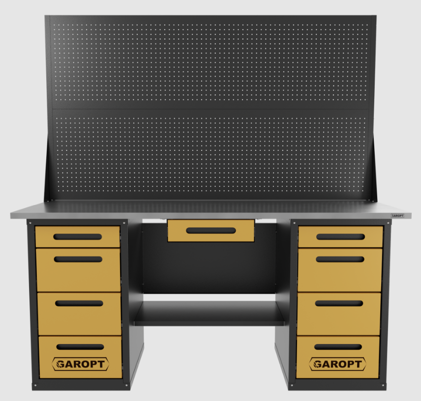 Верстак двухтумбовый 4 ящиков /4 ящиков с двумя экранами и ящиком, желтый 1800*700 GAROPT, GT1800Y1Y4Y4PP2.yell