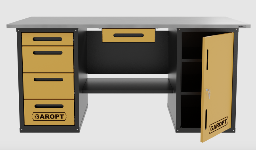 Верстак с ящиком двухтумбовыи дверь/4 ящиков, желтый 1800*700 Garopt, GT1800DY1Y4.yell