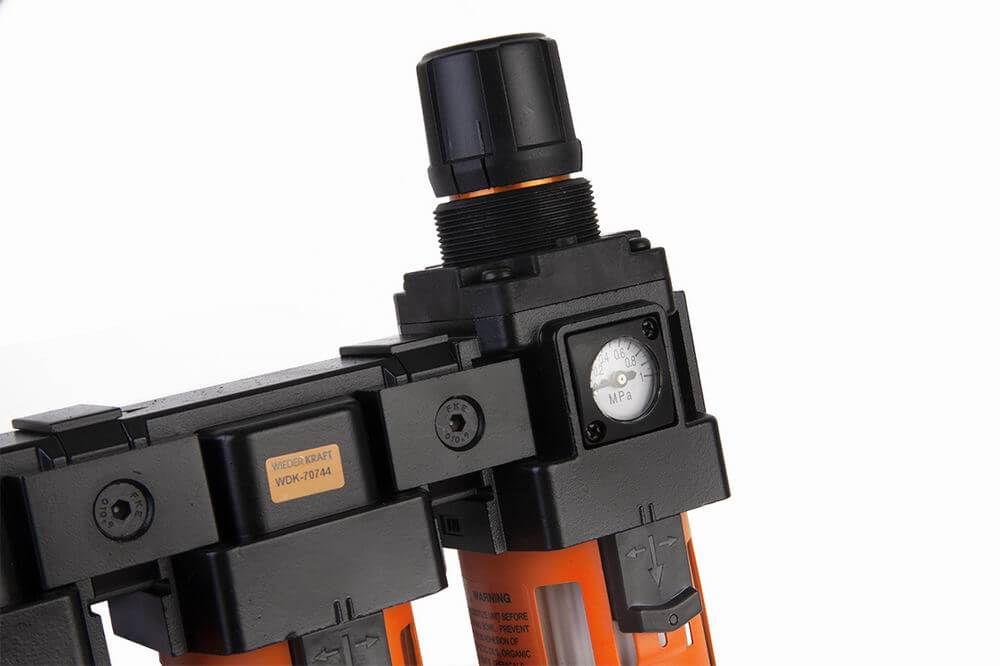 Модульная группа с тремя влаго-маслоотделителями и регулятором давления. Обеспечивает трехступенчатую фильтрацию и сепарирование сжатого воздуха, используя фильтрующие элементы различной степени очистки.