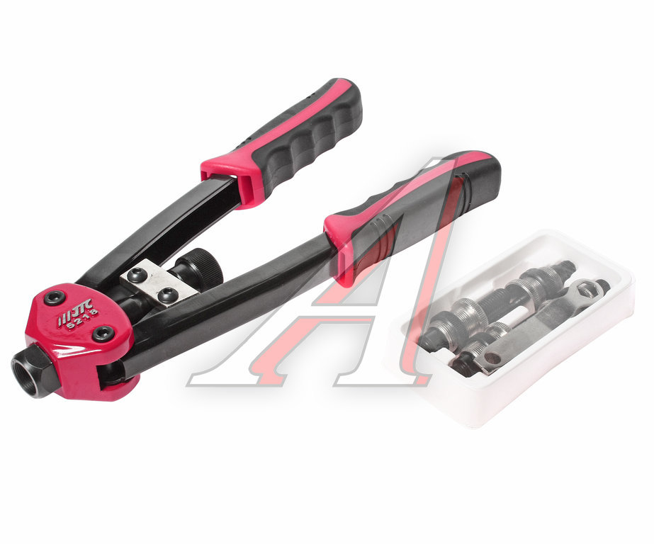 Комплектация Заклепочник усиленный - 1 шт. Насадки под разные размеры заклепок - 4 шт. Сервисный ключ - 1 шт. Описание Конструкция повышенной прочности с удлиненными рукоятками позволяет прикладывать большее усилие. Алюминиевый корпус, хром-молибденовые рукоятки с двухцветными накладками. Кожух для захватов выполнен из хром-ванадиевой стали, а сами захваты из стали марки SCM435. Размер аналогичен JTC-5218. Общая длина: 325 мм. Размеры заклепок: 5, 6, 8, 10.