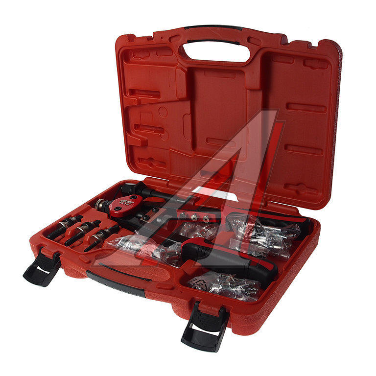 Устройство двойного применения: как для гаек, так и для глухих заклепок. Требуется лишь заменить головку. Размер такой же как у JTC-5218. Общая длина: 325 мм. Производительность: заклепки: как у 5218. гайки: как у 5218N. В комплекте: заклепки: 20 шт/каждого размера (1/8", 5/32", 3/16", 1/4"). гайки: 10 шт/каждого размера (5, 6, 8, 10 мм).