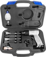 Характеристики Хвостовик применяемых насадок: 10,2 мм Цикличность: 4500 уд/мин. Давление магистрали Мax: 6,3 атм Расход воздуха средний: 113 л/мин. Диаметр воздушного шланга: 10 мм Штуцер подключения: ¼’’DR Размер пневмомолотка (длина): 150 мм Вес пневмомолотка: 1,45 кг Размер кейса (ДхШхВ): 460х320х290 мм Вес набора: 2,05 кг