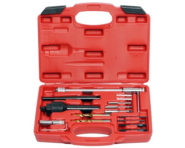 Инструмент удаления свечей накаливания TA-F1041 – современное устройство, которое пригодится при ремонте и ТО двигателей. Большой универсальный набор позволяет быстро демонтировать прикипевшие детали. Преимущества: Высокая надежность. Гарантия 12 мес. Прочные изделия рассчитаны на длительную эксплуатацию, изготовлены из сплава повышенной прочности. Комплект собран в пластиковый кейс. Легкий и прост в перевозке. В наборе: T-образная рукоять, Адаптер сверл, Держатель съемника, Винт силовой, Гайка силовая, Сверла M8 и M10, Сверло 3.5 mm, Метчики ? дюйма, M8, M10, Оправки. Обратите внимание: Хранение желательно в сухом помещении. Протирайте от пыли и грязи. Инструмент удаления свечей накаливания TA-F1041 можно применять на любых предприятиях. Закажите его сегодня!