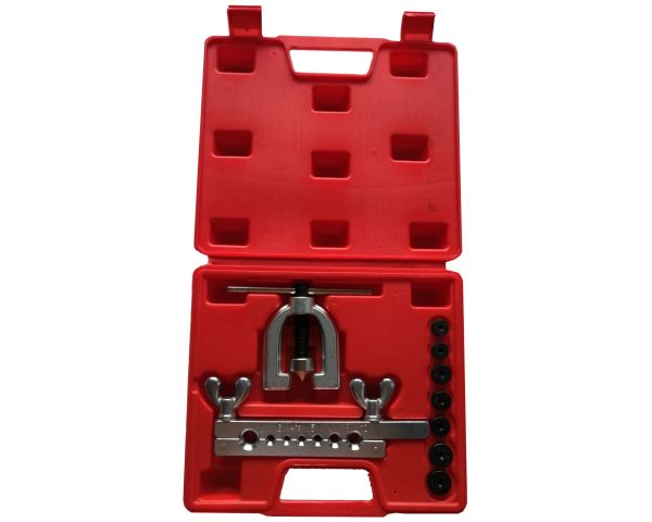 Инструмент для развальцовки труб ТА-М1071 – это набор из 10 предметов для обработки окончаний медных и латунных трубок различных систем автомобиля. Аналоги модели: TA-M1070 и MHR09065. Угол развальцовки – 45 градусов, подойдет для работы с трубками систем охлаждения, водопроводных и газовых, тормозных и т.д. В комплекте: Матрица с отверстиями разного диаметра позволяет надежно закрепить трубку для обработки. Литая стальная муфта с развальцовочным конусом. Оправки: 3/16", 1/4", 5/16", 3/8", 7/16", 1/2", 5/8". Преимущества: Все предметы изготовлены из 45 стали, крепкие и долговечные. Набор универсален, широкий выбор адаптеров нужного диаметра. Поставляется в чемодане из пластика, чтобы детали не терялись и хранились в порядке. Набор инструментов ТА-М1071 доступен к заказу. Оформите заявку на нашем сайте или звоните.
