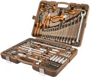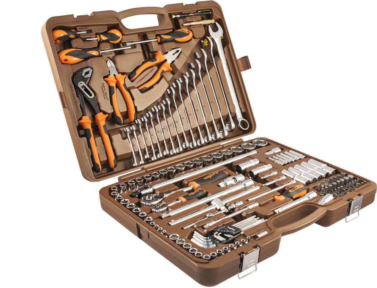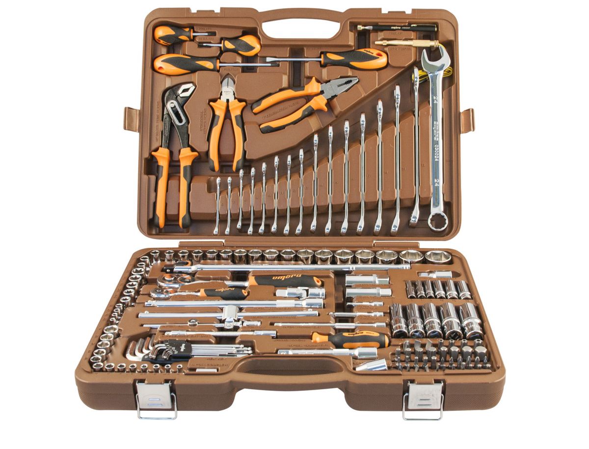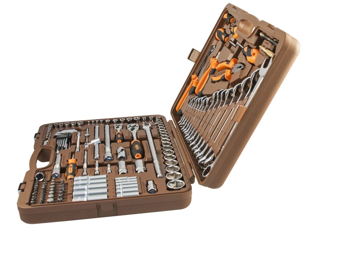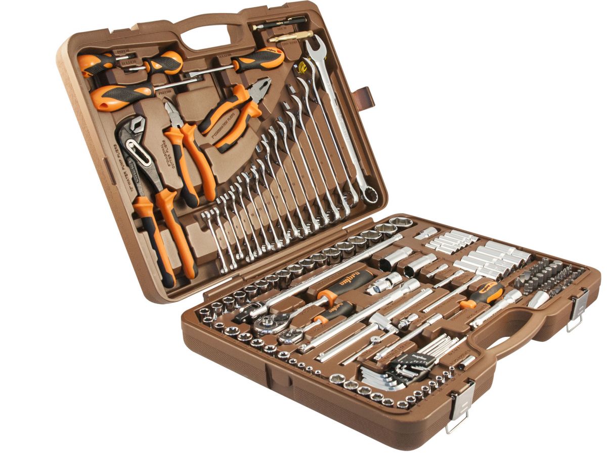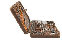 В наборе содержится ассортимент инструмента необходимого для проведения несложного ремонта, технического обслуживания автомототехники своими силами и работ по дому.