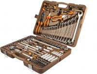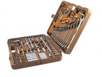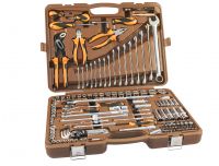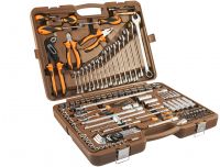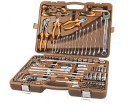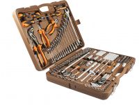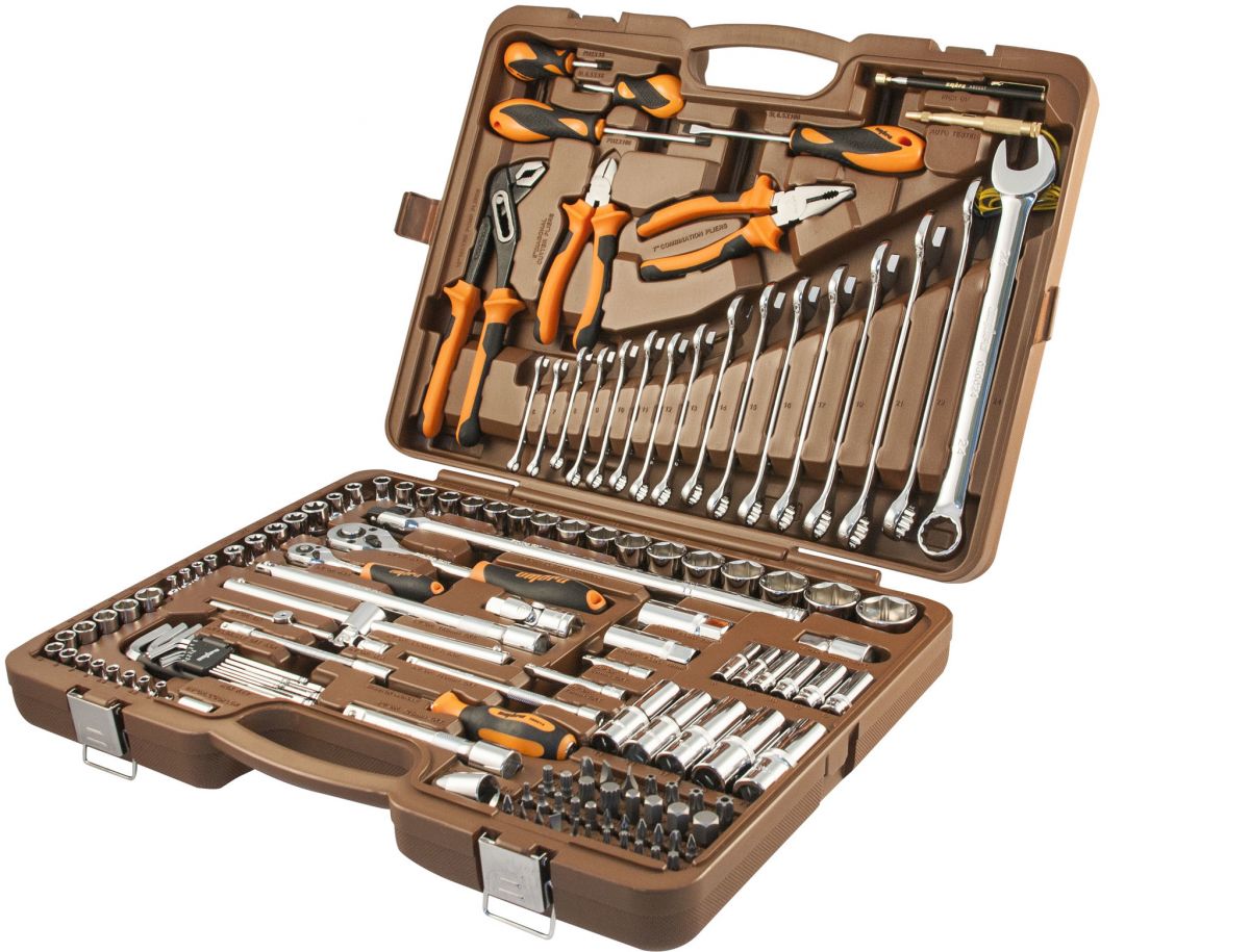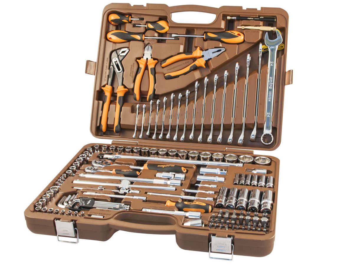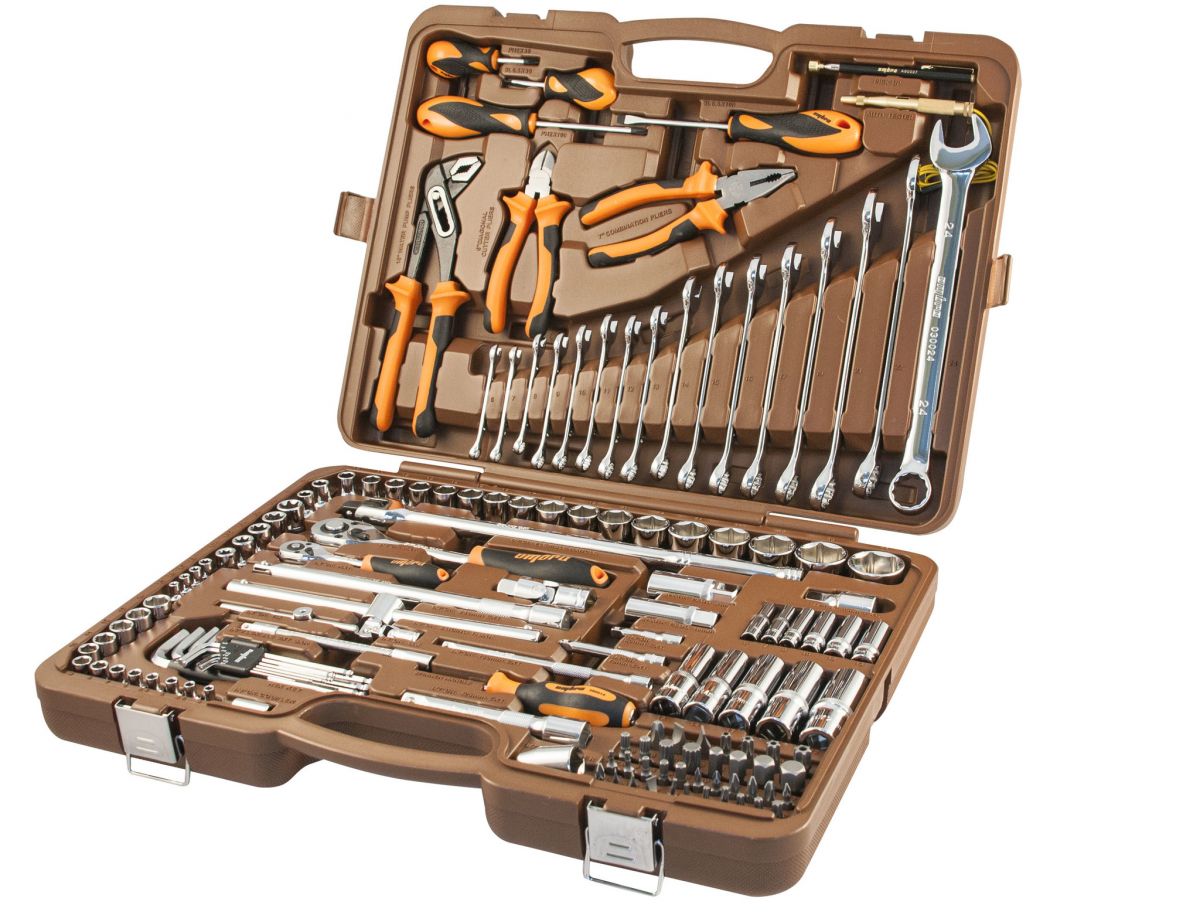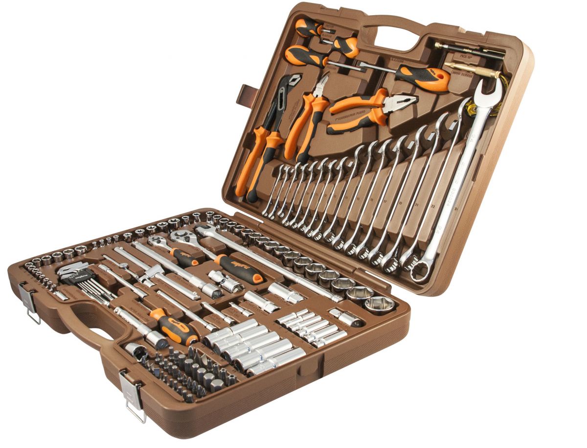 В наборе содержится ассортимент инструмента необходимого для проведения несложного ремонта, технического обслуживания автомототехники своими силами и работ по дому.