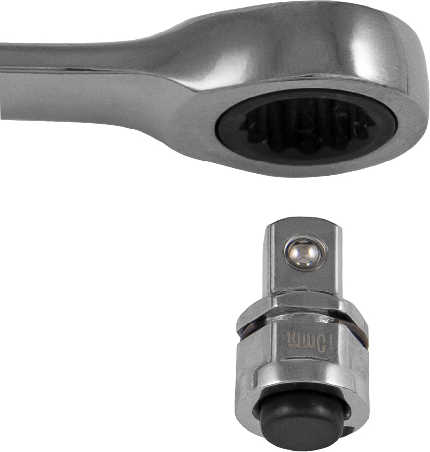 Привод-переходник для трещоточных ключей используется для присоединения к трещоточной части ключа торцевых головок - таким ключ трансформируется в трещоточную рукоятку. Изделие выполнено из легированной высококачественной стали и обеспечивает простоту и эффективность при работе.