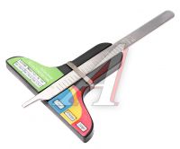 Комплектация Индикатор износа шин. Описание Применяется для определения остаточной высоты протектора шины, что обеспечивает безопасную эксплуатацию автомобиля. Значения цветов на инструменте: - Голубой - эксплуатация безопасна. - Желтый - высокая степень износа шин, требуется замена. - Красный - эксплуатация запрещена. Технические характеристики Диапазон измерения 1-30 мм. Габаритные размеры: длина 17 см, ширина 7 см, высота 1 см. Порядок работы Вставьте измерительный щуп в углубление протектора. По положению метки на щупе определите степень износа шин в соответствии с описанием ниже: - Для легковых автомобилей. При глубине протекторов менее 1,6 мм - рекомендуется заменить шины. - Для грузовых авто. При глубине протекторов менее 2,4 мм - рекомендуется заменить шины. - Для крупных грузовых авто. При глубине протекторов менее 3,2 мм - рекомендуется заменить шины. Повторите измерения в 3-5 точках шины по ее ширине для более точного результата (высота протектора может быть разной на всей ширине шины).