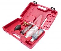Комплектация Специальная двухкамерная колба-тестер; Жидкость для тестера утечек 250 мл. (JTC-1236L); Резервная бутылочка для жидкости 250 мл; Переходник с быстросъемным соединителем; Резиновая груша для стравливания воздуха. Описание Набор представляет собой диагностическое устройство – тестер, с помощью которого можно определить содержания выхлопных газов в охлаждающей жидкости системы охлаждения двигателя автомобиля. Наличие выхлопных газов косвенно свидетельствует о проблемах, связанных с микротрещинами в камере сгорания, или неплотной прилегающей прокладке между блоком двигателя и ГБЦ и т.п., обычно возникающих после перегрева двигателя. Проверка производится при работе двигателя на холостом ходу. Местоположение утечки определяется путем отключения одной свечи зажигания за один раз и проведением повторного испытания. Рекомендуется использовать вместе с тестером JTC-1005. Назначение Диагностика двигателей внутреннего сгорания, как с бензиновым, так и дизельным впрыском; тест на определения содержания в охлаждающей жидкости выхлопных газов. Принцип действия Отработавшие газы при проникании в систему охлаждения двигателя накапливаются в «воздушной подушке» радиатора или расширительного бачка. Тестер анализирует состав этого воздуха, и тестовая жидкость меняет цвет с голубого на желтый при наличии CO2 в воздухе для бензиновых двигателей и на зеленый при наличии CO2 в воздухе для дизельных двигателей. Обычный метод часто дает неправильный результат, так как присутствующие в воздухе частицы щелочи могут нейтрализовать эффект присутствия СО2, показывая, что утечки нет, когда она присутствует. Эти частицы абсорбируются первой камерой тестера, которая действует как фильтр, позволяя только воздуху и СО2 достигать второй — верхней камеры. Если жидкость в верхней камере меняет цвет на желтый или зеленый, это факт, свидетельствующий о наличии СО2 в антифризе.