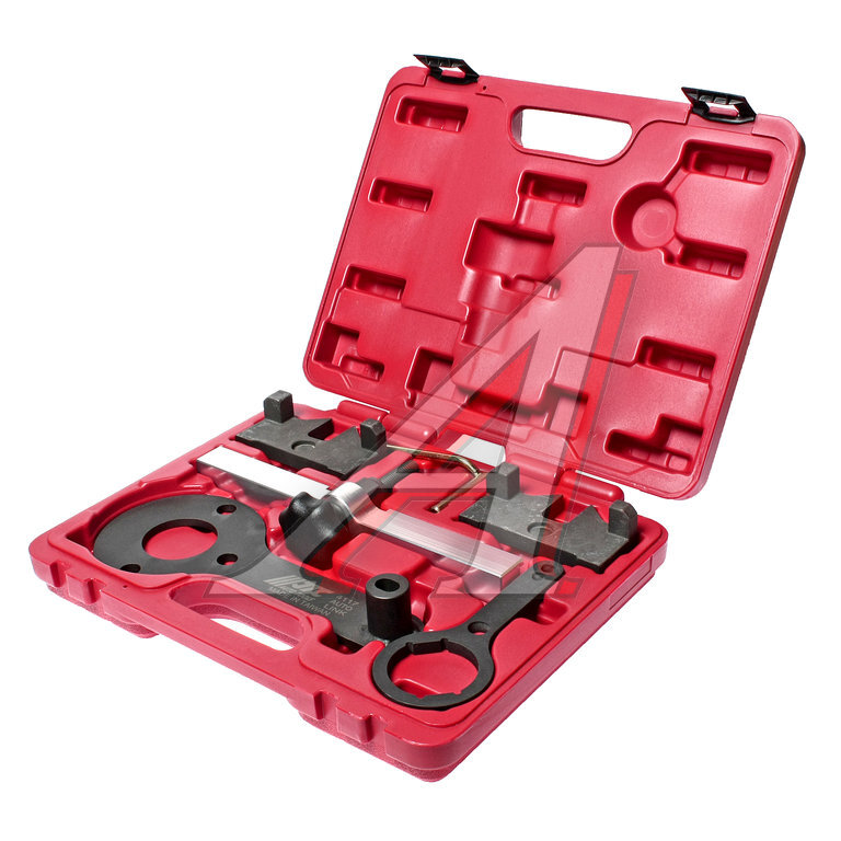 Комплектация Фиксатор распредвала. Оригинальный номер: 11 9 890. Состоит из: регулировочный винт (1); фиксирующая планка (2); фиксаторы 2 шт. (3); силовой винт (6); Кронштейн для фиксации коленчатого вала (4). Оригинальный номер: 11 8 570; Фиксатор коленчатого вала (5). Оригинальный номер: 11 9 190; Стопор коленвала (7). Оригинальный номер: 11 8 090. Описание Применяется для регулировки фаз ГРМ. Предназначен для фиксации распредвала ВМТ. Применение Набор приспособлений предназначен для установки и проверки фаз ГРМ двигателей BMW модификации N63. ПОДРОБНАЯ ВИДЕОИНСТРУКЦИЯ