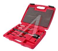 Комплектация (A) Съемник цанговый. Размер: 6.0 мм. (внутренний Ø - 7.7 мм.) (B) Съемник цанговый. Размер: 5.0 мм. (внутренний Ø - 6.8 мм.) (C) Съемник цанговый: Размер: 5.0 мм. (D) Съемник цанговый: Размер: 3.6 мм. (E) Съемник цанговый: Размер: 2.7 мм. (F) T-образный держатель. (G) Съемник цанговый внутренний. Описание Набор предназначен для извлечения закоксованных и сломанных свечей накаливания. В комплект входит съемник для демонтажа поврежденных свечей. Порядок работы Снимите электрический разъем свечи накаливания. Открутите свечу накаливания. Выберите подходящий цанговый съемник. Вкрутите его в Т-образный держатель. Установите держатель со съемником на свечу накаливания. Начинайте прокручивать рукоятку Т-образного держателя по часовой стрелке. Для дальнейшего извлечения свечи начинайте работать обратным молотком. Свеча начнет извлекаться. Извлечение сломанных свечей накаливания: Просверлите в оставшейся части свечи накаливания по центру отверстие. Вкрутите внутренний цанговый съемник (G) в Т-образный держатель. Установите держатель со съемником в свечу накаливания. Начинайте прокручивать рукоятку Т-образного держателя по часовой стрелке. Для дальнейшего извлечения свечи начинайте работать обратным молотком. Свеча начнет извлекаться.
