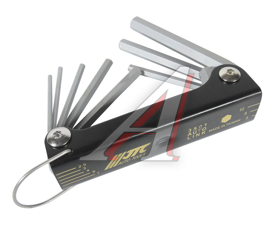 Удобный раскладывающийся набор шестигранников с большим крутящим моментом. Изготовлены из закалённой хром-ванадиевой стали. Размеры: 2,5, 3, 4, 5, 6, 7, 8, 10 мм. - 8 шт. Габаритные размеры: 190/90/40 мм. (Д/Ш/В) Вес: 440 гр.