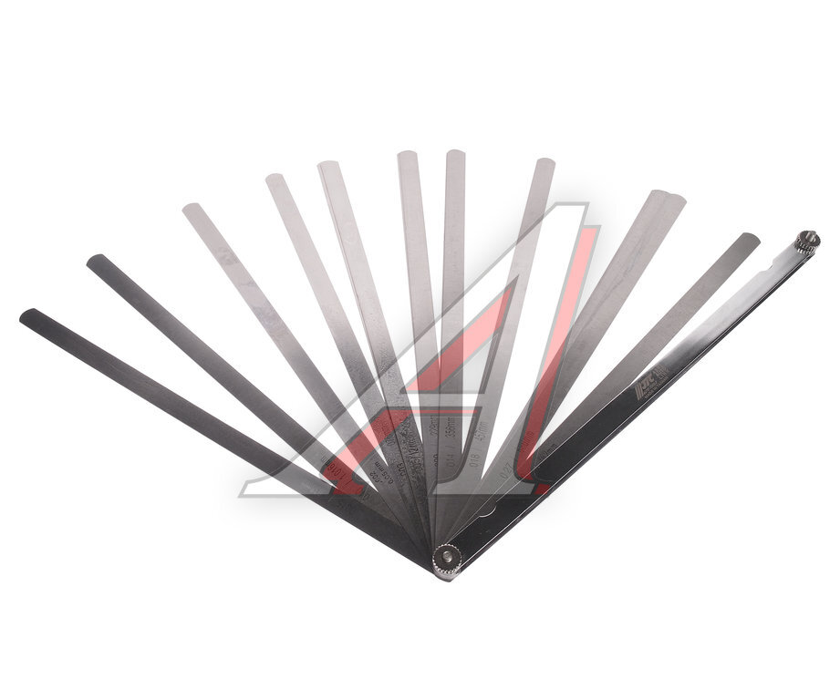 Длина: 300 мм. Толщина: 12.8 мм. Метрический размер: 0.038, 0.051, 0.076, 0.1.02, 0.127, 0.152, 0.178, 0.203, 0.229, 0.254, 0.279, 0.305, 0.33, 0.356, 0.381, 0.406, 0.423, 0.457, 0.483, 0.508, 0.533, 0.635, 0.686, 0.762, 1.016 мм. Общее количество щупов: 25. Габаритные размеры: 430/75/22 мм. (Д/Ш/В) Вес: 371 гр.