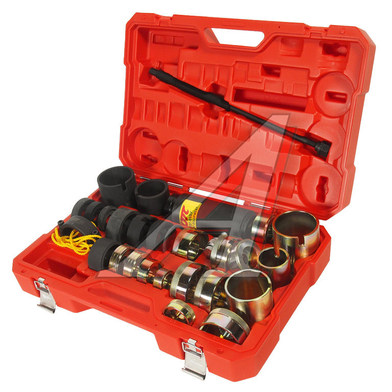 Комплектация Гидравлический цилиндр - 1 шт. Силовой винт - 1 шт. Оправки - 23 шт. Приспособление для пережима сайлентблоков (состоит из зажима и оправки) - 1 шт. Фиксирующее кольцо - 1 шт. Описание Применение гидравлического привода позволяет быстро и безопасно снять/установить сайлентблоки подрамников. Экономия рабочей силы. Широкий диапазон применения благодаря большому количеству входящих в комплект приспособлений. Насос поставляется отдельно (артикул JTC-HB600). При мощности насоса 10000 psi (700 кг/см²) максимальное усилие, создаваемое гидравлическим приводом, составляет 15 т. Применяется с адаптером JTC-CP350 (входит в комплект). Перед покупкой необходимо проверить совместимость БРС на цилиндре и насосе. Применение BMW E31, E32, E34, E39, E53, E60, E65, E66, E70, E87, E90, E91, E93, M3, F01, F02, F07, F10, F11, F12, F13, F18, F20, F21, F22, F25, F30, F31, F32, F33, F34.