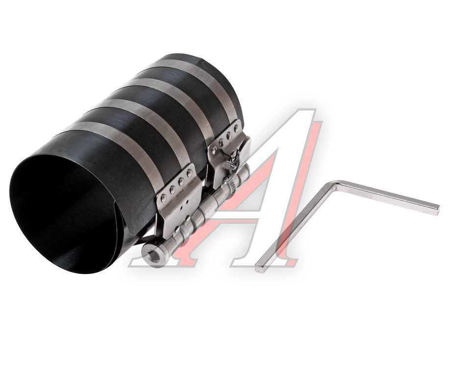 Комплектация Оправка поршневых колец. Описание Применяются для сжатия поршневых колец при установке поршней в цилиндры двигателя. Автоматическая фиксация оправки значительно облегчает работы по замене поршневых колец. Инструмент изготовлен из специальной пружинной стали, комплектуется четырехгранным ключом для регулировки размера. Технические характеристики Диапазон: 90-175 мм. Высота: 150 мм. Порядок работы Установите оправку на поршневое кольцо. Зафиксируйте оправку. Соединение должно быть плотным, без зазоров. Легкими ударами выбейте кольцо из оправки, до момента установки в цилиндр. Важные рекомендации Запрещено использовать инструмент для фиксации любых других элементов кроме поршневых колец.