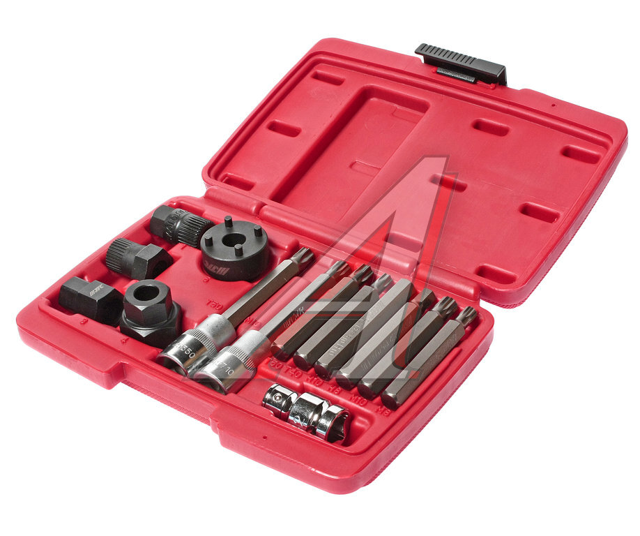 Съемник Специальная конструкция ударной головки с удлинителем предназначена для снятия муфты свободного хода при замене генератора или его шкива. В комплекте: Ударные головки 1/2" DR: M10, T50x110L - 2 шт. Удлинители ударне 75 мм L S2: M8, M10, H8, H10, T40, T50 - 6 шт.; Адаптер 10 мм (6 граней) 1/2"DR. - 1 шт.; Специальные гайки 33T x 19,5 мм, 33T x 18,2 мм, 6 граней x 17/21 мм, 6 граней x 28 мм, 4p x 302 мм - 5 шт. Применение: Фольксваген (Volkswagen), Ауди (Audi), БМВ (BMW), Форд (Ford), Шкода (Skoda), Мерседес (Mercedes-Benz), Опель (Opel), Порше (Porsche), Рено (Renault), Вольво (Volvo) и др. Общее количество предметов: 14. Упаковка: прочный переносной кейс. Количество в оптовой упаковке: 20 шт. Габаритные размеры: 220/150/30 мм. (Д/Ш/В) Вес: 1150 гр.