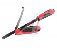Съемник В комплект входит 2 инструмента: Прямое приспособление состоит из двух рабочих частей (пластикового и металлического ножа). Предназначено для отделения стекла от герметика (образования зазора). Приспособление в форме крюка используется для отделения стекла от блока фары. Применение данного инструмента позволяет отделить стекло от блока фары без повреждений. Габаритные размеры: 380/178/45 мм. (Д/Ш/В) Вес: 3400 гр.